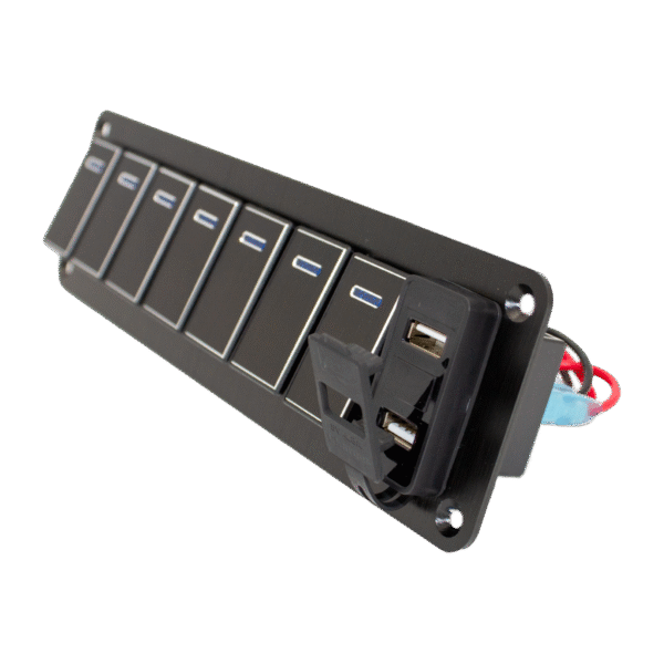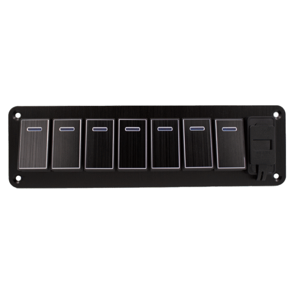Este panel de interruptores con iluminación LED y puertos USB integrados es la solución ideal para organizar y controlar múltiples accesorios eléctricos de tu vehículo de forma segura y profesional.