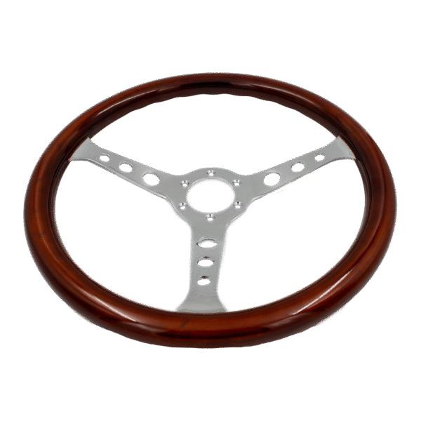El volante clásico en madera es la combinación perfecta entre elegancia, estilo retro y deportividad. Su aro en madera pulida ofrece un tacto cálido y cómodo, mientras que sus tres radios metálicos cromados aportan un acabado sofisticado y atemporal.